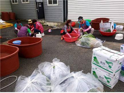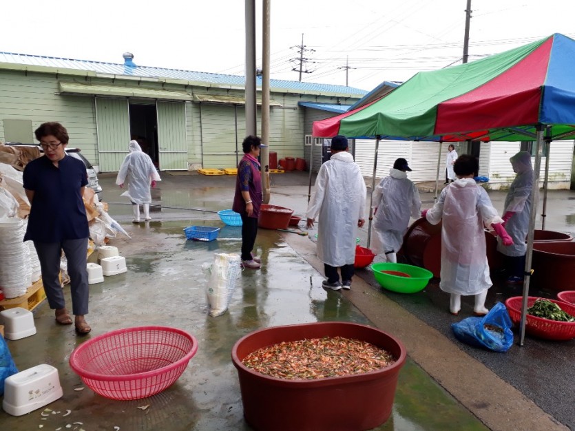 장대비가 내리는 날씨임에도 불구하고 안면읍자원봉사단 봉사자 14명이 참석하여 108가정의 어려운 이웃을 위하여 맛있는 열무김치를 담고, 꿀뚜기젓갈, 계란 등 반찬을 만들어 각 가정에 전달하여 건강한 여름을 날 수 있도록 격려하여 지역사회의 귀감이 되고 있습니다.