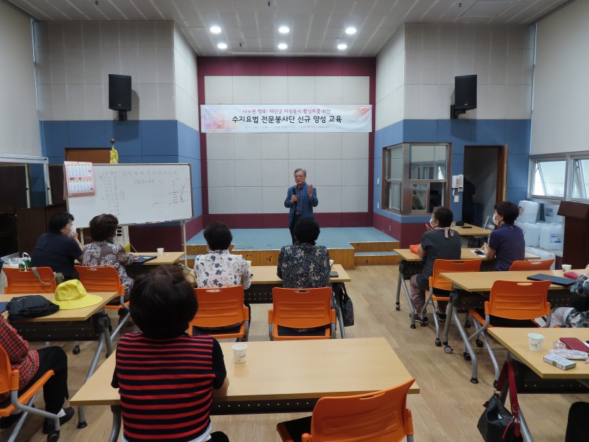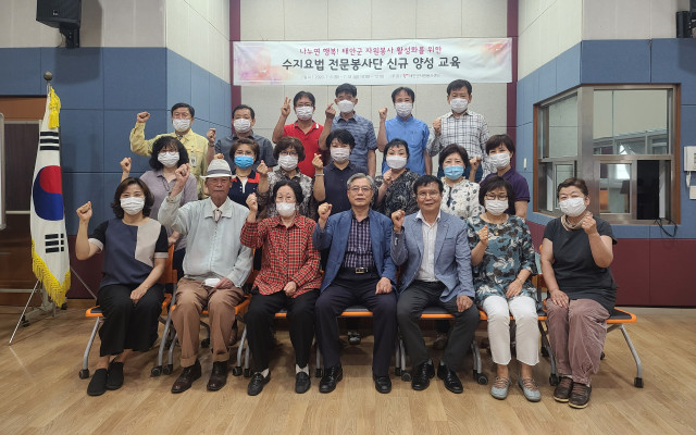 태안군자원봉사센터에서는 수지요법전문봉사단 양성교육의 종지부인 수료식을 진행하였습니다. 자원봉사활동현장에서 보다 전문적이고 수혜자에게 맞는 서비스를 제공하기 위하여 서산고려수지침 김성현강사님의 교육의 결과물로 총 봉사자20명이 총12회의 교육을 마치고 수료식을 진행하였습니다. 오늘 수료하신 자원봉사자 여러분의 활발한 활동을 기대해봅니다.