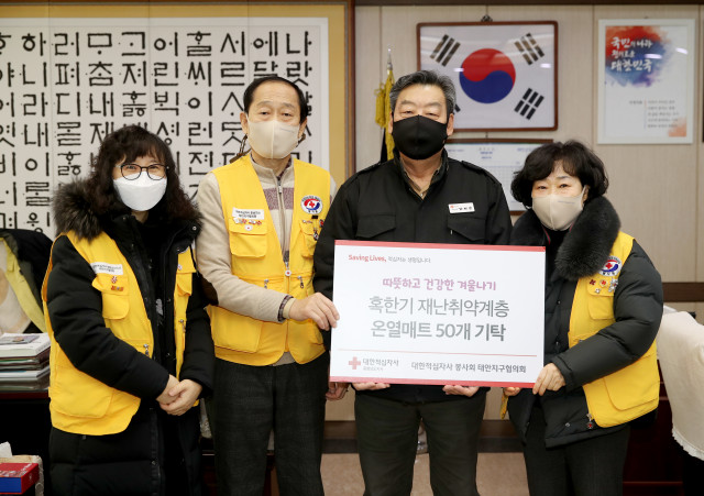 태안군자원봉사센터 에서는 따듯하고 건강한 겨울나기 캠페인으로 혹한기 취약계층 여러분들의 건강을 위해 "적십자"사에게 온열매트 50개를 기탁하였습니다.