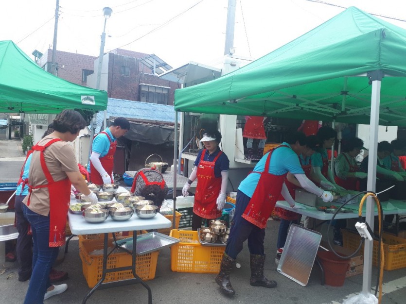 사랑의 밥차에서는 여름철 메뉴로 "삼계탕" 메뉴를 선보여 이원면 주민들과 함께 했습니다.