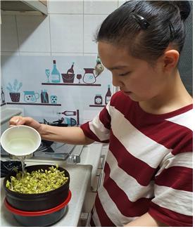 집에서 직접 기른 콩나물들을 수거해 직접 손질하여 나눔 봉사 활동을 진행하고 있습니다.