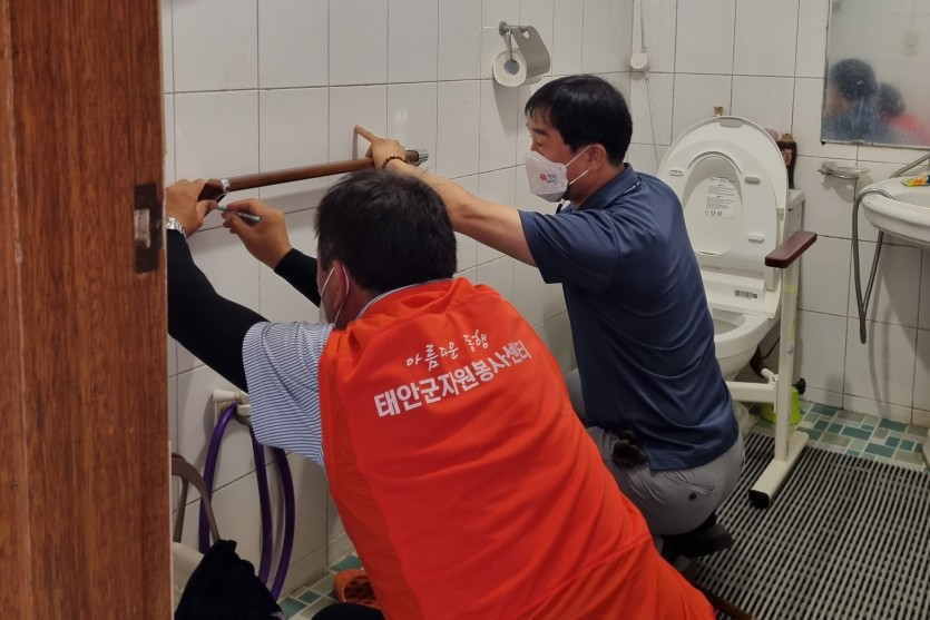 미연에 방지하고자 추진되었습니다, ‘화장실 안전바 설치 봉사’에 적극적으로 도움을 주신 태안의료기복지센터, 태안백화방문요양센터 봉사자분들께 깊은 감사 인사를 전합니다.