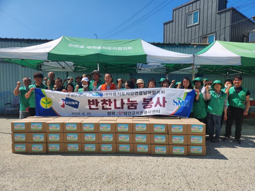 |취약계층 100가구를 선정하여 사랑가득 반찬나눔을 실시하였다. 물품구성으로는 열무김치, 멸치볶음, 음료, 과자 등을 포장하여 안면읍새마을남여협의회봉사단에서