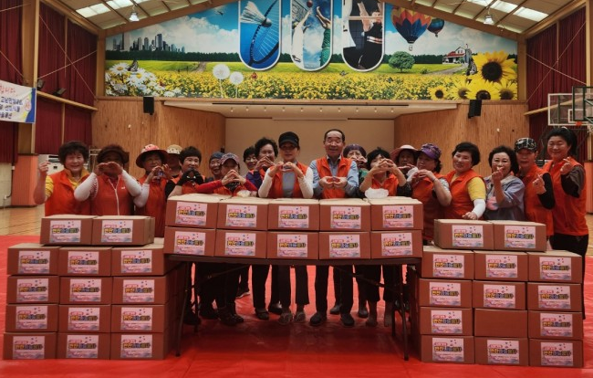 물품구성으로는 배추김치와 음료, 과자, 김으로 포장하였고, 배달봉사는 고남면자원봉사단에서 해주었다.
