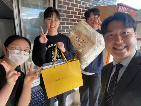 차렵 이불, 두유 등의 물품을 전달하며 따뜻한 명절 인사를 전달하는 시간을 가졌습니다.