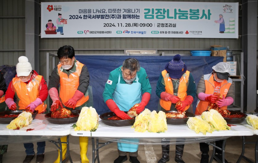 2024.11.28(목) 태안군자원봉사센터에서는 마을을 나눠요, 따뜻한 겨울나기 '2024 한국서부발전(주)와 함께 하는 김장나눔봉사'가 진행되었습니다.
