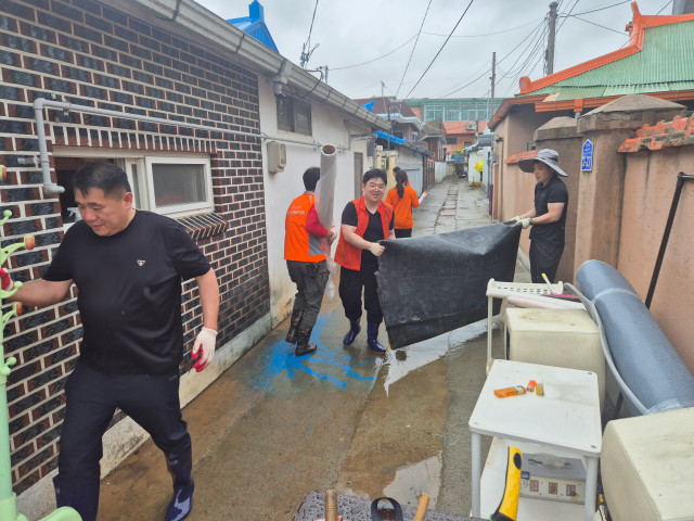 태안군자원봉사센터에서는 집중호우 피해가 심각한 태안읍 시장길 일대를 자원봉사자와 함께 수해복구 봉사에 참여했다.