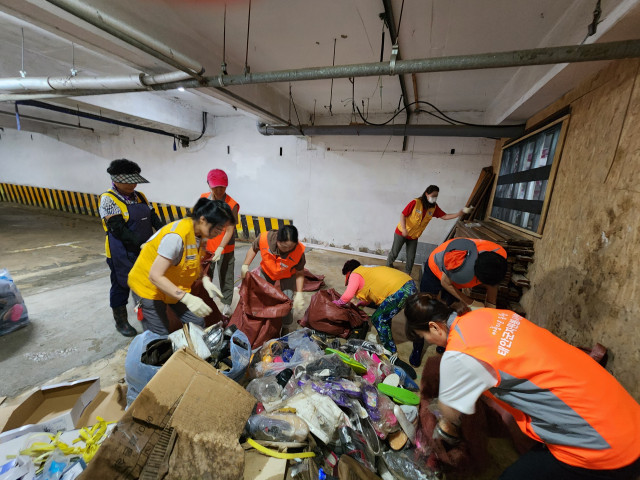 태안군자원봉사센터에서는 집중호우 피해를 입은 상가 일대를 적십자 자원봉사자와 함께 수해복구 봉사에 참여했다.
