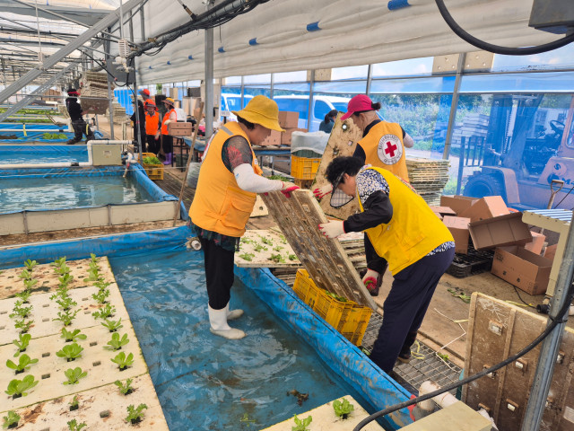 태안군자원봉사센터에서는 집중호우 피해를 입은 상옥리 상추하우스에 적십자 봉사자5, 특수임무 봉사자 3명과 함께 수해복구 봉사에 참여했다.