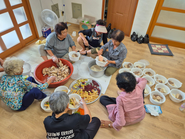 삼계탕, 미역줄기볶음, 간식 등을 준비하여 주민들이 직접 전달하였습니다.