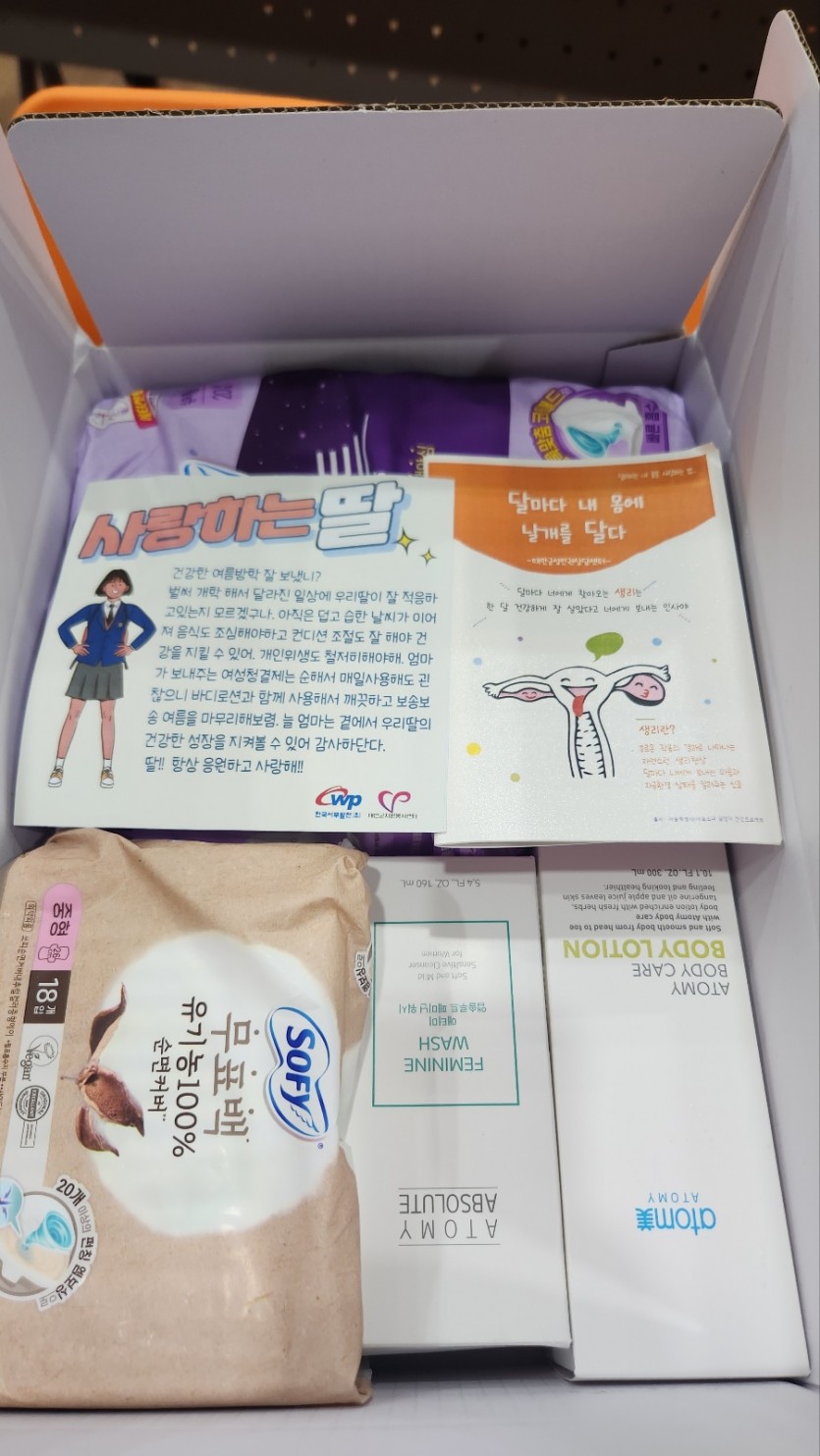 '사랑의 핑크박스' 사업은 어려운 형편이거나 엄마의 부재, 보호자의 장애 등의 사정으로 여성용품이 필요한 57명의 학생에게 다양한 여성 용품과 엄마의 편지