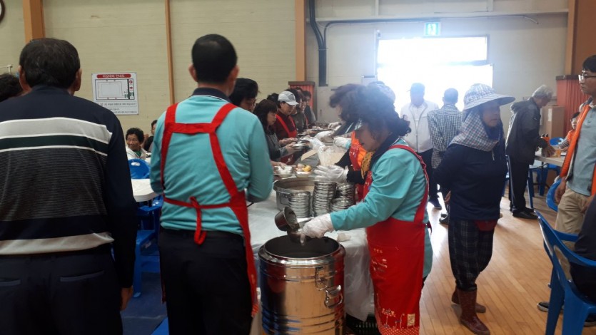 전날부터 재료를 준비하고 당일날 밥차에서 미역국과 밥을 하여 고남면 지역주민들에게 따뜻한 점심식사를 대접하였습니다.