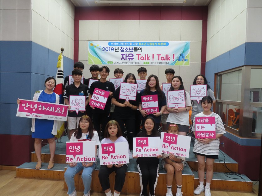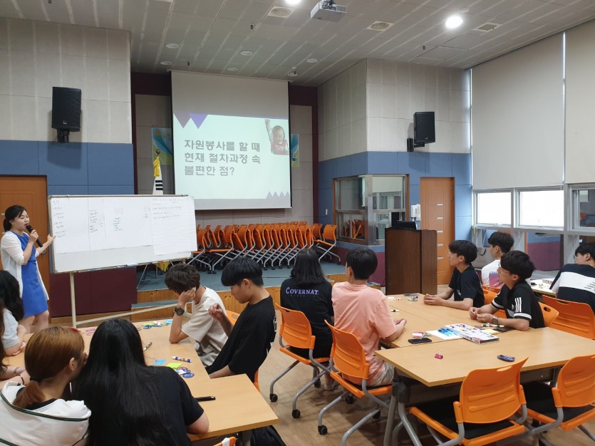 2019.7.29(월) 태안군자원봉사센터에서는 청소년을 대상으로 자원봉사 토론회가 열렸습니다.