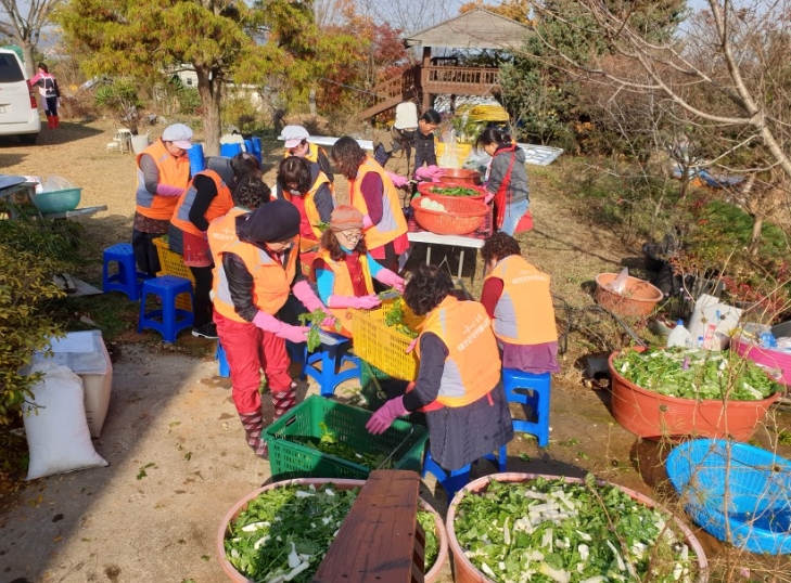 이날 봉사해 주신 분들은 행복나눔 김치봉사단으로 9명이 참석하여 김치를 담그시고,