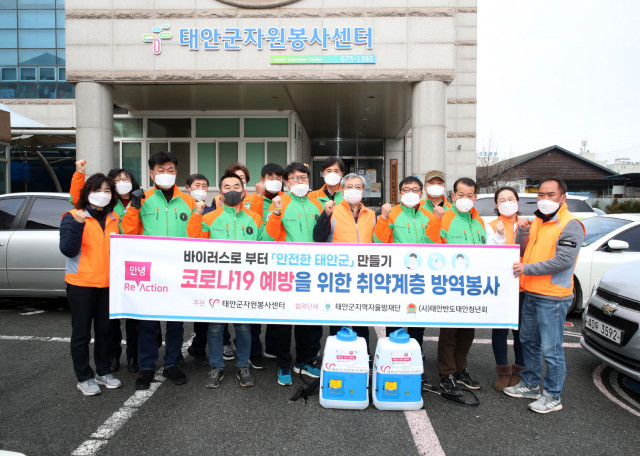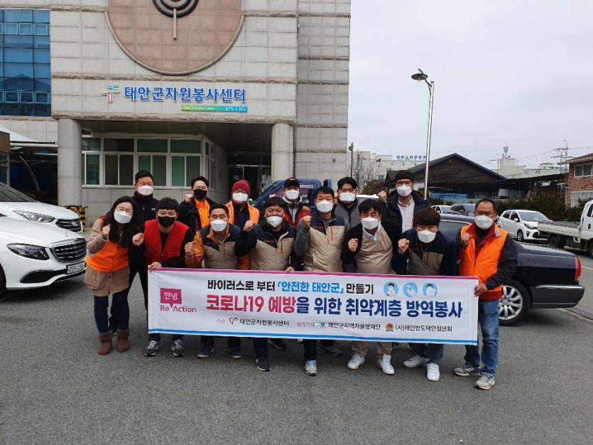 전국적으로 확산되는 '코로나19'예방과 지역확산방지를 위해서 태안군지역자율방재단과 (사)태안반도태안청년회가 함께 동참하였습니다.