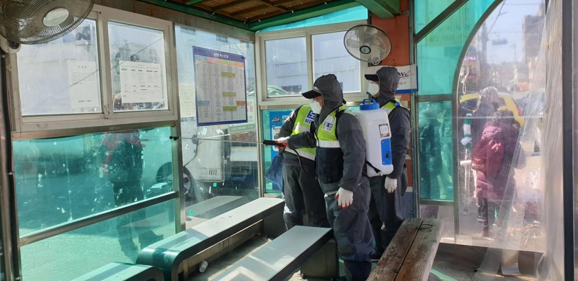모범운전자회는 군센터 릴레이 소독봉사활동에 참여하여 학생들이 많이 모이는 편의점 주변 및 군민이 이용하는 버스승강장을 대상으로 소독봉사 활동을 실시했습니다.