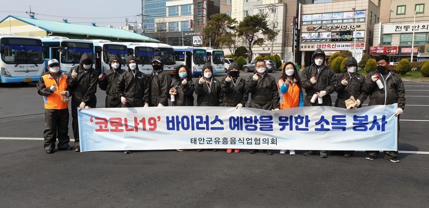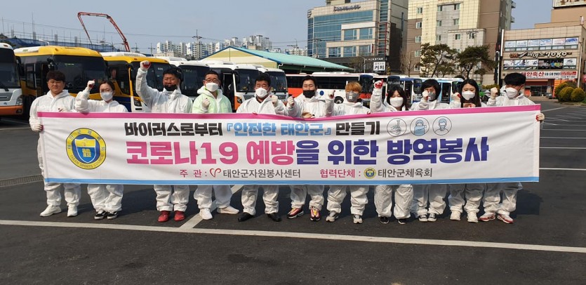 태안군자원봉사센터는 코로나19확산예방을 위하여 센터에 소속된 각 단체들과 함께 태안군시외버스와 시내버스를 중심으로 소독봉사 릴레이를 실시 중입니다. 금일 4월 14일 기준 제35회까지 실시했고 4월 29일까지 진행예정입니다.