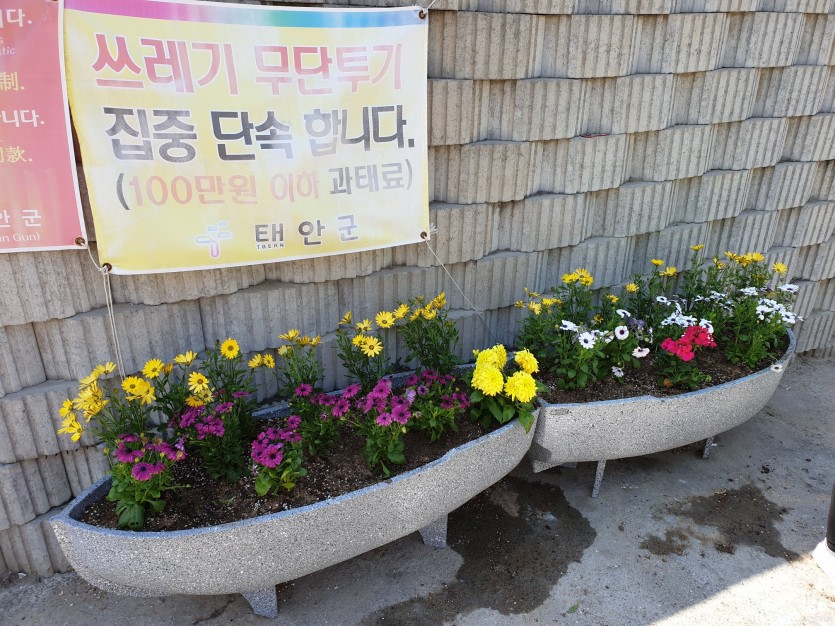 태안군자원봉사센터는 4월 27일 새마을지도자 태안읍 남녀협의회와 함께 태안읍 일대 불법쓰레기투기지역 5곳을 선정하여 <양심가득! 꽃향기가득! 클린마을 봉사화단> 프로그램을 진행했습니다. 태안읍 거점캠프 박주연상담가의 주도로 각 장소마다 팀별로 나눠 초화류 식재를 진행한 이번 봉사활동은 불법쓰레기를 줄이고 지역주민 간 갈등해소로 아름다운 거리를 조성하는 취지로 이뤄졌으며, ‘코로나19’로 인하여 따뜻한 봄 햇살을 느낄 여유가 없어 아쉽지만 양심화단을 통하여 잠시나마 향긋한 꽃향기가 주는 봄빛 여유를 즐기길 바랍니다.