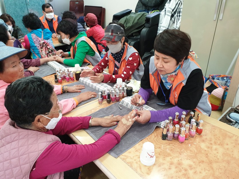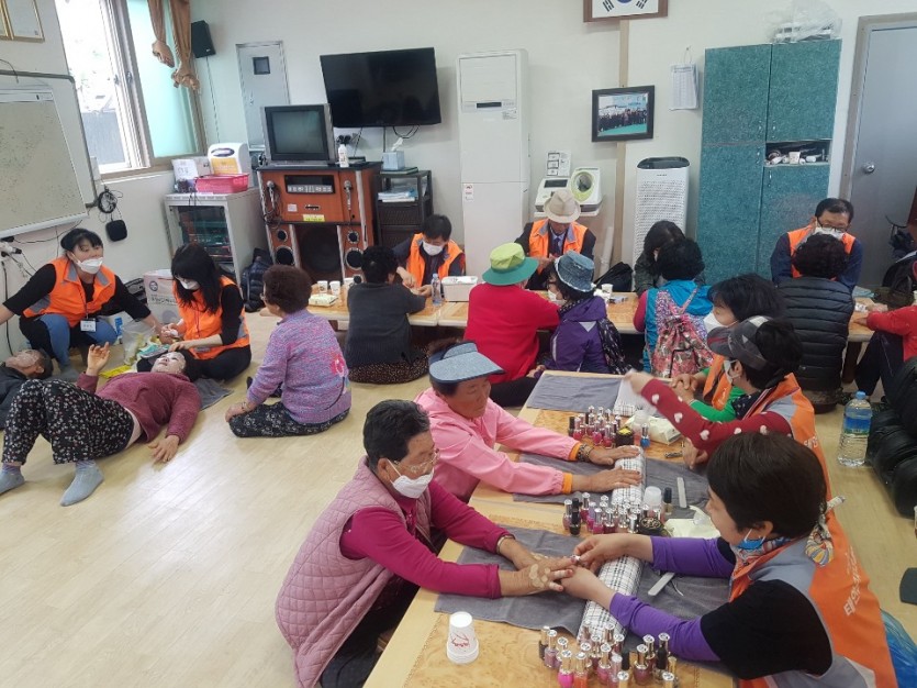 상세 프로그램은 <사랑의 밥차&김정순 요리연구가_짜장면‧버섯탕수와 버섯강정>, <수지침봉사단_뜸 봉사>, <이‧미용봉사단_마스크팩, 네일아트> 등으로 알차게 준비하여 가의도 주민들과 함께 즐거운 시간을 가졌습니다.