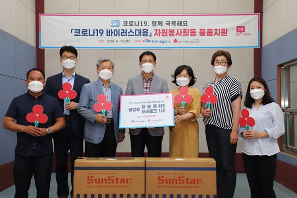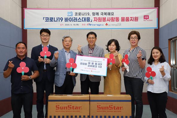 2020. 6. 18. (목) 태안군자원봉사센터에서는 한국서부발전(주)에서 공업용재봉틀 4대와 공업용오버로크 1대를 충남사회복지공동모금회를 통하여 기증받는 전달식을 가졌습니다.