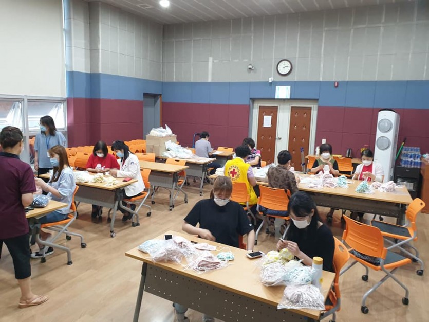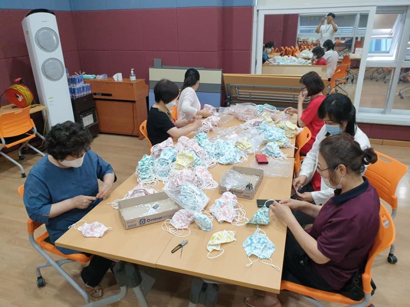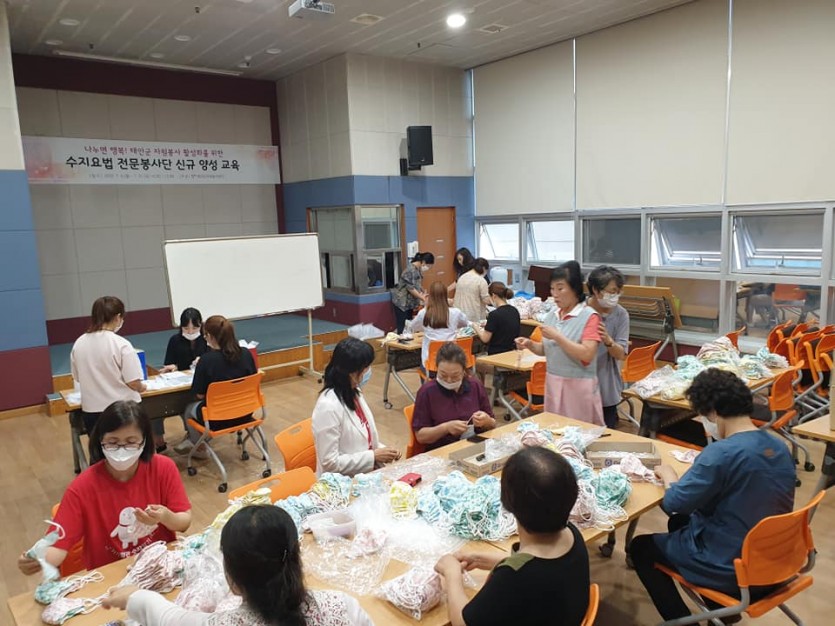 금일 태안군자원봉사센터 강당에서는 태안군보건의료원 방문보건팀의 의뢰를 받아서 여름철 중증질환자분들에게 제공할 면 마스크 제작을 마무리하는 활동을 진행하였습니다.
