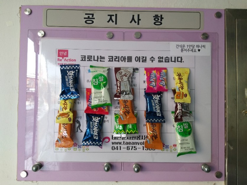 태안군자원봉사센터 에서는 코로나19 위기로 인한 군민들의 안정을 위해 각 마을별 엘리베이터에 깜짝 선물 부착을 진행했습니다.