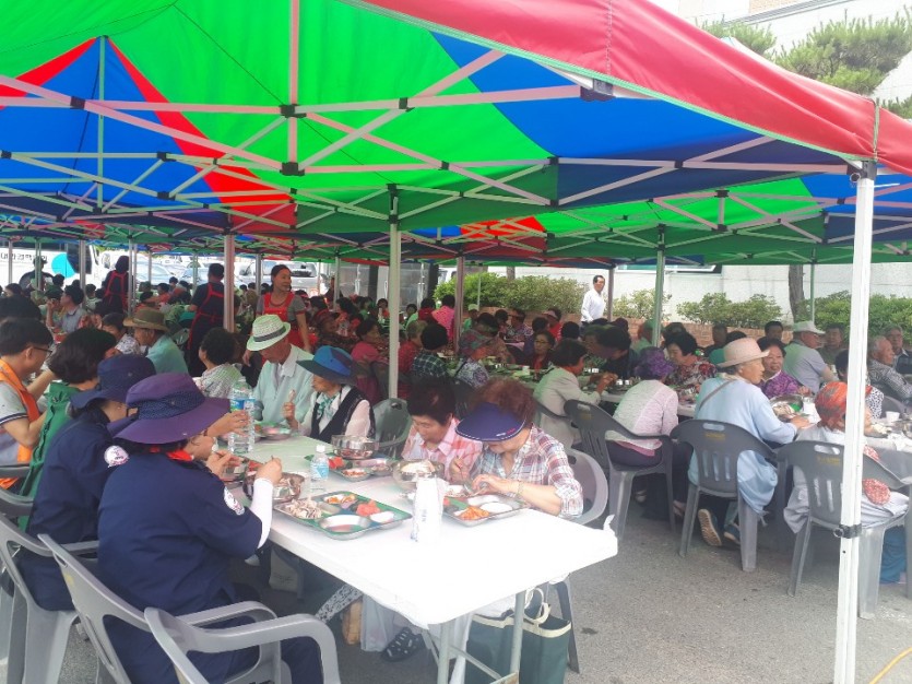 사랑의 밥차에서는 여름철 메뉴로 "삼계탕" 메뉴를 선보여 이원면 주민들과 함께 했습니다.