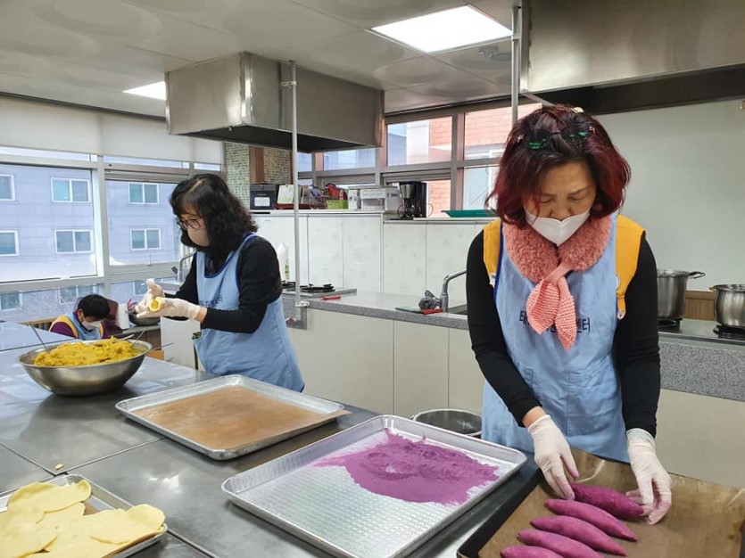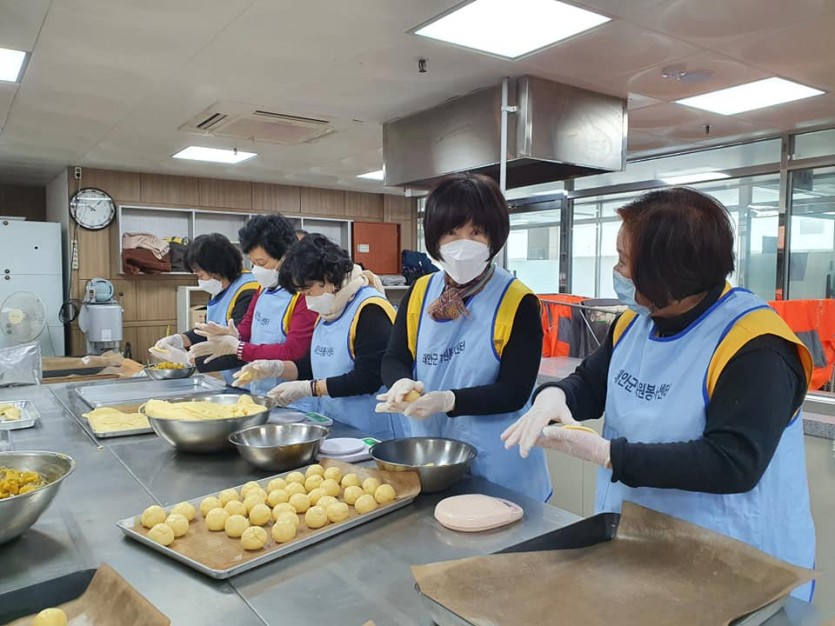 우수봉사단체인 대한적십자사 태안지구협의회와 함께 어려운가정에게 고구마빵 50개를 만들어 전달하였습니다.