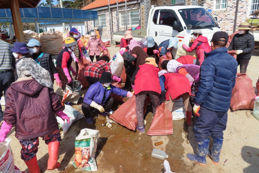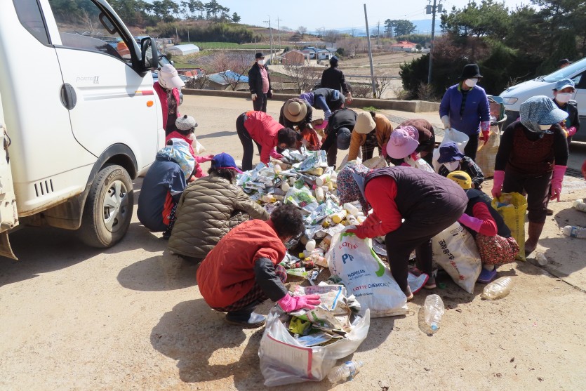 재활용쓰레기를 분리에 전 주민이 나와 참여하셨습니다.