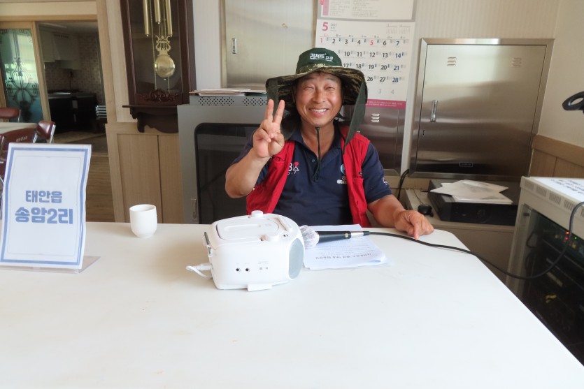 5월 24일(화) 오후 점심시간이 막 지난 시간, 송암2리에서는 활기찬 이장님의 목소리와 즐거운 트로트가 틀어집니다.