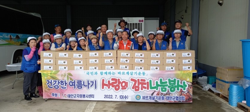 태안군자원봉사센터에서는 지난 7.13(수), 사랑의 열무김치 나눔봉사가 진행되었습니다. 바르게살기운동태안군협의회분들께서 정성스럽게 조리해주셨으며