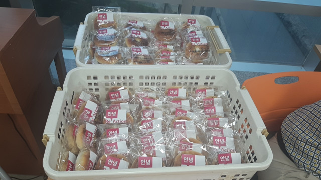 이날 오후에 진행되는 초등생 안녕리액션 캠페인 활동에 참석하는 아이들에게 간식용으로 배분하였습니다.