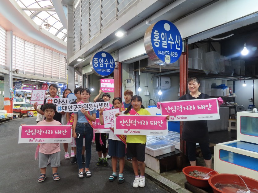 서부시장에서 '이웃에게 따뜻한 말 한마디 안녕하세요', '안심먹거리 태안'