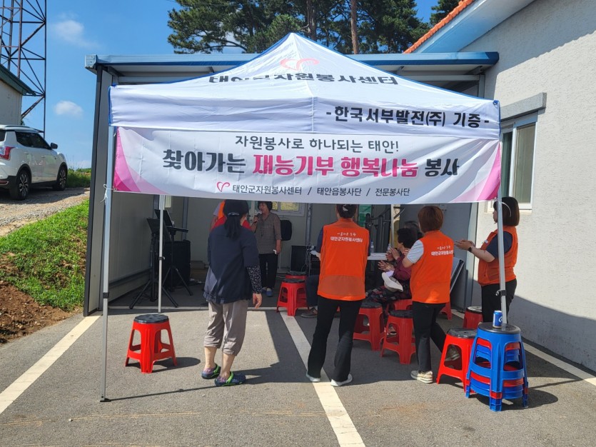 태안군자원봉사센터에서는 지역의 고령 어르신들의 여가 생활과 생활 편의 지원을 위해 전문봉사단과 태안읍봉사단이 함께하는 '찾아가는 마을 재능 봉사'를 실시하고 있다.