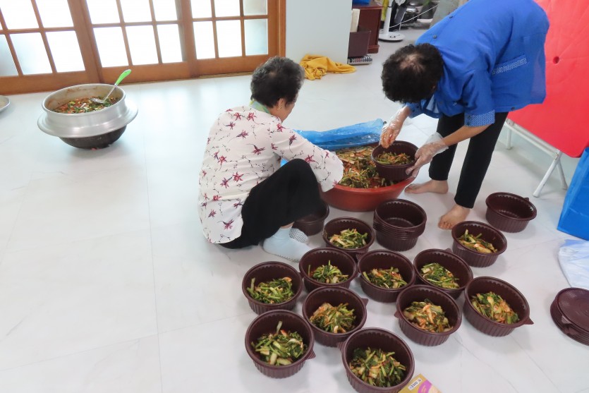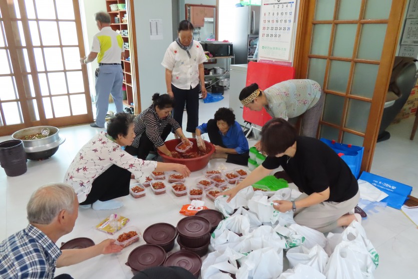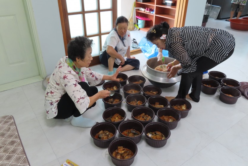 이웃사랑반찬 나눔 봉사는 태안군자원봉사센터 주민주도적 안전마을조성사업 ‘마을을, 잇다’의 사업 중 하나로 주민들의 협의로 마을의 취약주민을 선정하고 반찬을 만들어