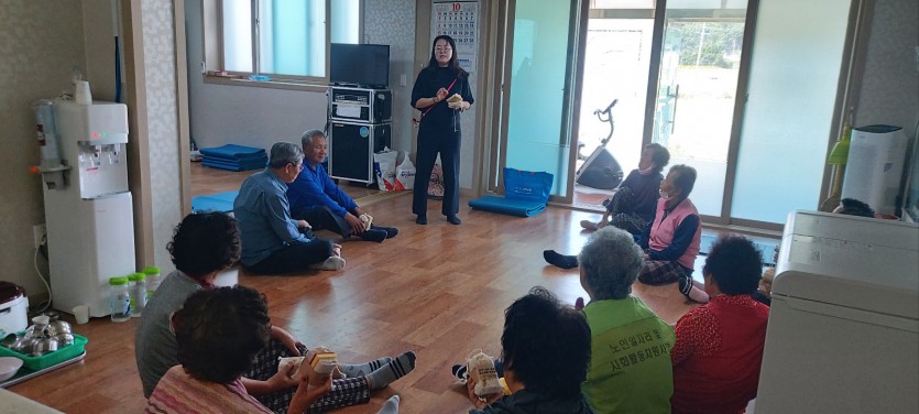 태안군자원봉사센터에서는 '마을을, 잇다' 사업의 일환으로 반곡1리 주민들에게 친환경 교육을 진행하며,