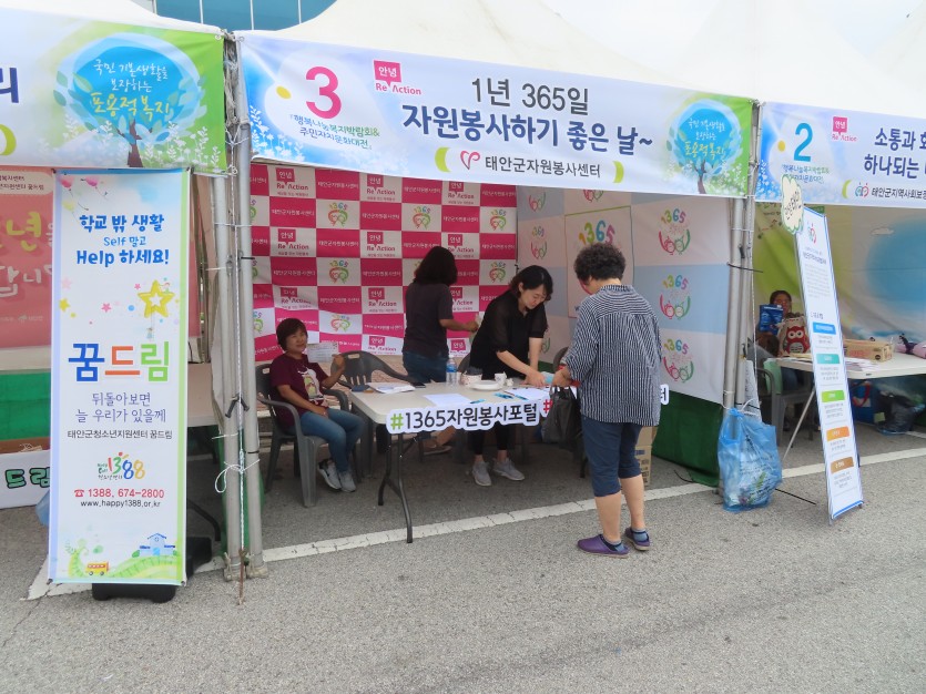 태안군자원봉사센터에서는 1365홍보/ 안녕리액션캠페인/ 네일아트/ 수지침/ 민화그리기/ 적십자차봉사/남면자원봉사단