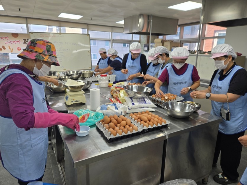 9월 26일(목) 태안군자원봉사센터 거점캠프에서는 지역 내 아동을 위한 제과제빵 나눔 봉사를 실시하였습니다.
