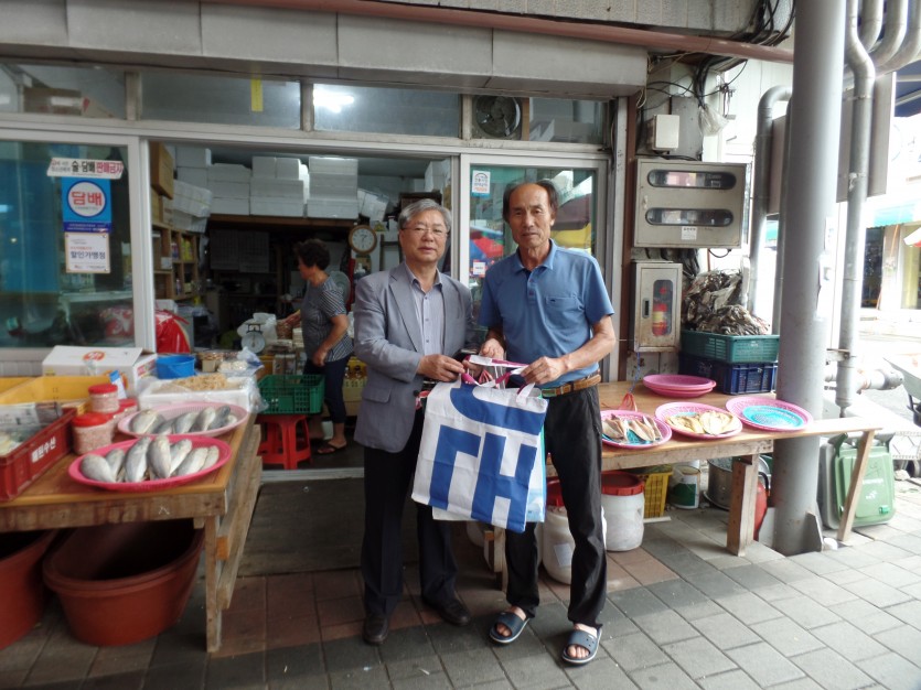 전통시장을 대상으로 장바구니를 만들어 3개 시장에게 전달하였다.