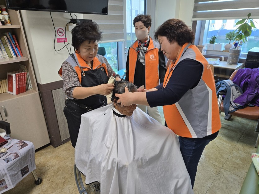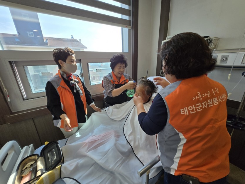 고령환자를 위한 이미용 봉사는 격 월로 정기적으로 태안읍자원봉사단에서 진행하고 있습니다.