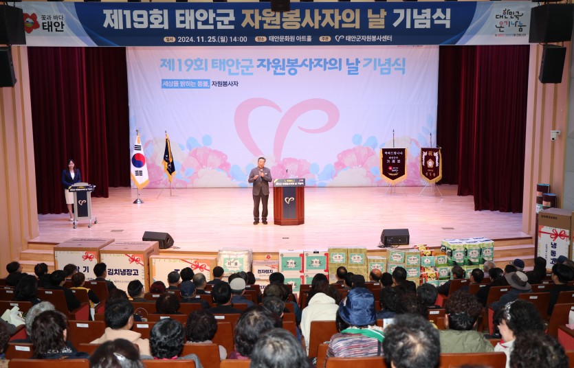 2024. 11. 25(월) 태안군자원봉사센터에서는 제 19회 자원봉사자의 날 기념식이 문화원 아트홀에서 열렸습니다.
