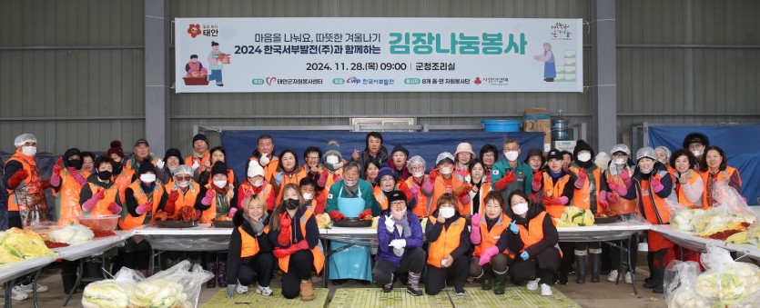 2024.11.28(목) 태안군자원봉사센터에서는 마을을 나눠요, 따뜻한 겨울나기 '2024 한국서부발전(주)와 함께 하는 김장나눔봉사'가 진행되었습니다.