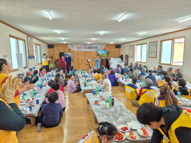 이원희 센터장과 태안군자원봉사자들은 일일히 잔치에 참여해주신 어르신들의 손을 잡고 위로의 말씀을 건네었고, 청송군 진보면 어르신들은