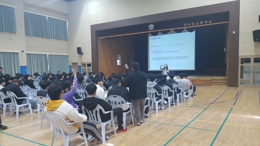 태안만리포고등학교 소양교육 게시글 작성정보 작성자 태안군자원봉사센터 작성일 19-05-27 16:47 조회수 443 댓글수 0 목록 게시글 본문 태안만리포고등학교 소양교육 이전글 사랑의 김치봉사(안면읍) 19-05-27 다음글 태안여자고등학교 기초소양교육 19-05-27 댓글 0 등록된 댓글이 없습니다. 목록