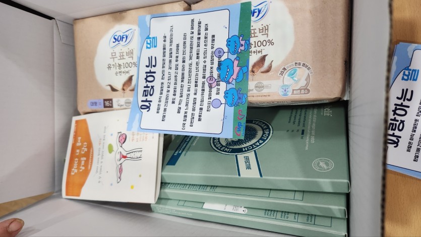 '사랑의 핑크박스' 사업은 어려운 형편이거나 엄마의 부재, 보호자의 장애 등의 사정으로 여성용품이 필요한 57명의 학생에게 여성 용품과 엄마의 편지, 생리수첩(성인권상담센터)을 핑크박스에 넣어 함께 지원하고 있습니다.