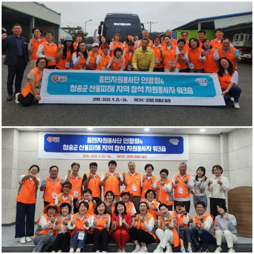 2025. 9.25 - 9. 26 태안군자원봉사센터는 읍면자원봉사단 연합회 및 청송군 산불피해 지역 참석 자원봉사자 워크숍을 강원도 영월군 일원에서 진행하였습니다.