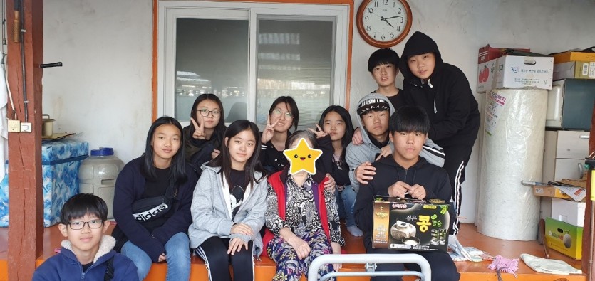 그 후, 27일(일) 남면 거점센터 상담가(유명희)님과 남면중 학생들이 홀몸노인 3가구를 방문하여 전달하였습니다.