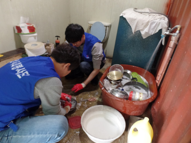 못해서 태안군자원봉사센터와 한전산업개발 봉사단에서는 청소는 물론 설거지와 주위 환경정리도