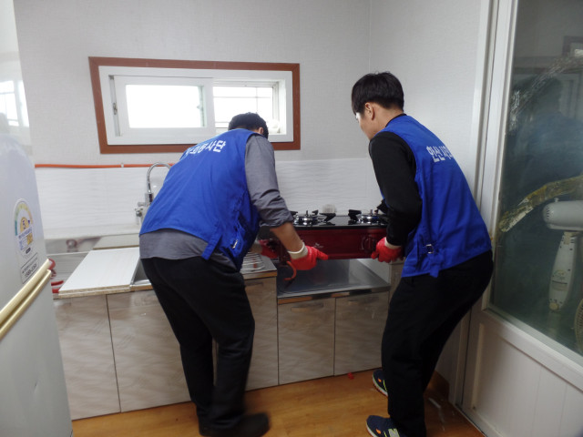올 겨울 한전산업개발과 연계하여 소외계층 어르신댁에 씽크대와 가스렌지 설치(11. 15)