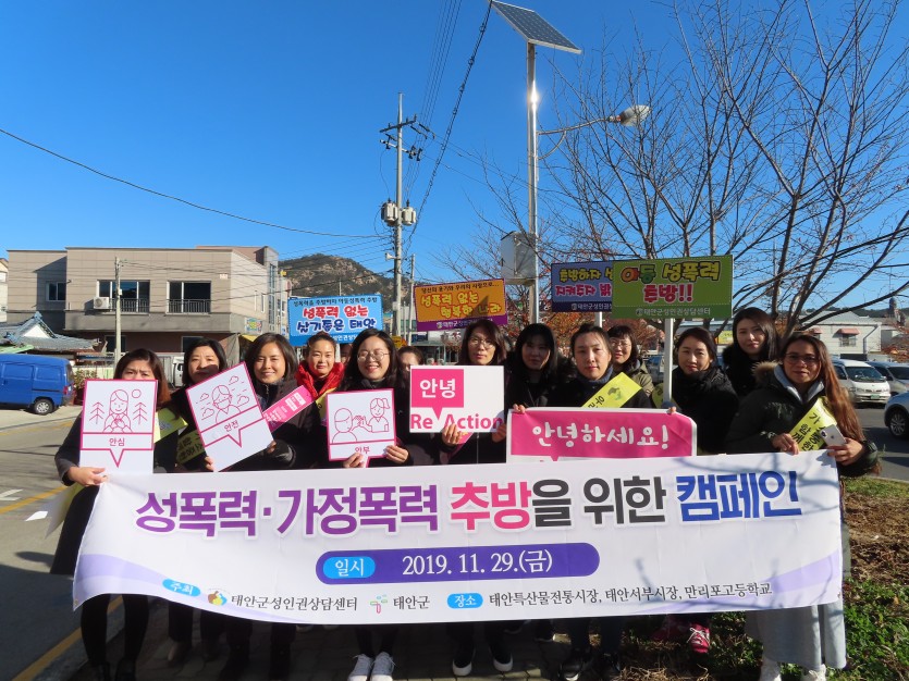 안전하고 안심하는 태안을 만들기 위한 "폭력 예방 캠페인"을 성인권상담센터와 함께 참여하였습니다.